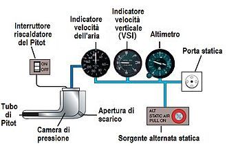 COMPONENTI: I sensori e le sonde del velivolo misurano le grandezze fisiche quali pressione statica, pressione dinamica, temperatura, ANGOLO D’ATTACCO, e trasmettono, in forma DIGITALE, le quantità misurate ad un apposito COMPUTER (AIR DATA COMPUTER). Questo processa i parametri in ingresso ricavando le necessarie informazioni circa velocità ed assetto che mediante un’apposita INTERFACCIA (IL SYMBOL GENERATOR), sono inviate agli schermi di navigazione. In caso di avaria dei display, o perdita totale del sistema elettrico, sono presenti in cockpit anche di tradizionali strumenti meccanici di riserva che per MAGGIOR SICUREZZA, prendono le informazioni e l’alimentazione elettrica da impianti completamente separati da quelli principali.